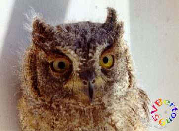 Ce jeune Hibou petit duc avait été trouvé par des promeneurs. Comme beaucoup d'oiseaux blessés ou supposés abandonnés, il a fait une escale au parc avant de rejoindre un centre de soin agréé.